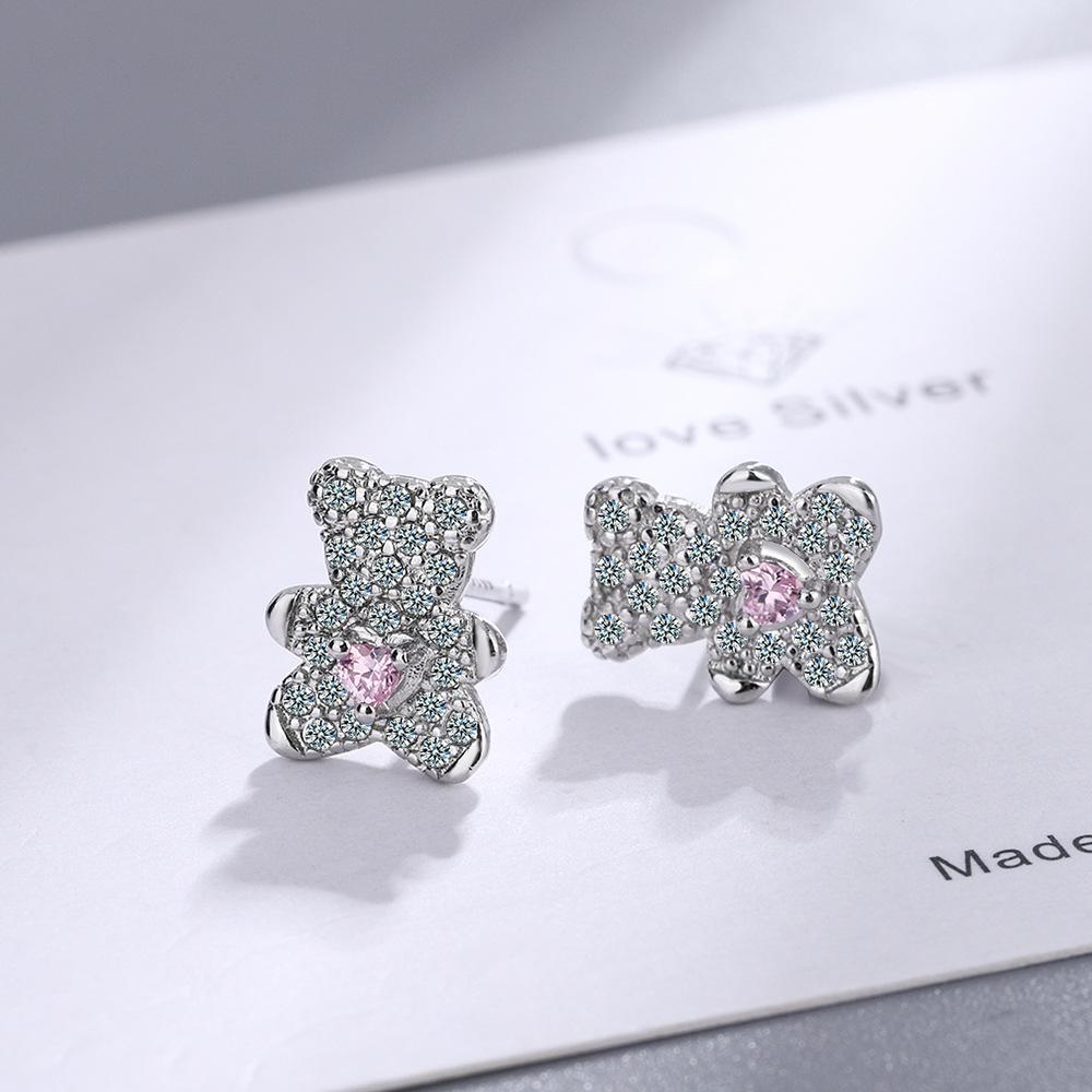 2026 Little Fresh Animal Cartoon Bear Girl Heart Diamond Love Ear Jewelry Stud Earrings