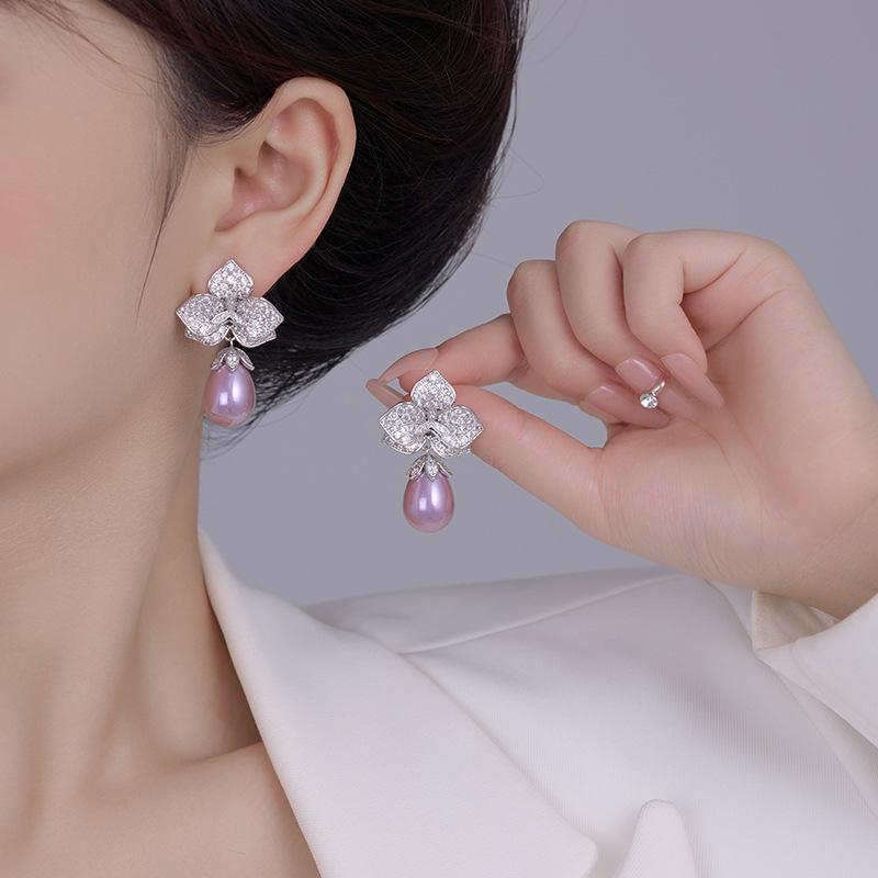 New and Elegant Pearl Flower Earrings for Women with a Light Luxury and High-end Feel