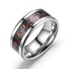 8MM Stainless Steel Black Carbon Fiber Ring Fashion Red/Blue Unisex Cool Charm Gift for Men Women