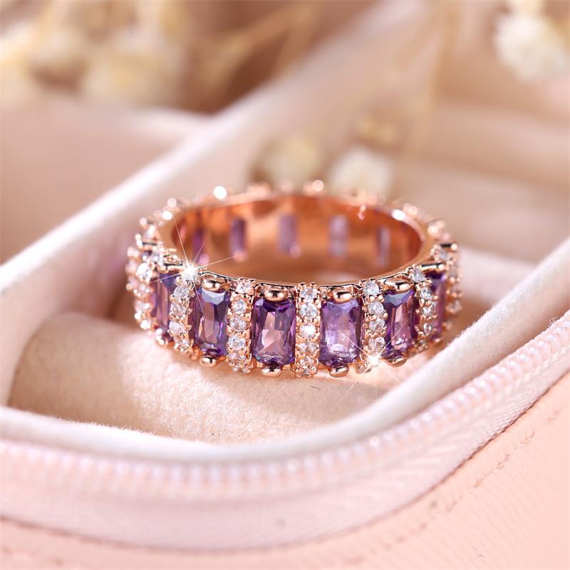 Luxury Female Purple Zircon Stone Ring Trendy Rose Gold Color Engagement Rings For Women Cute Wedding Gift