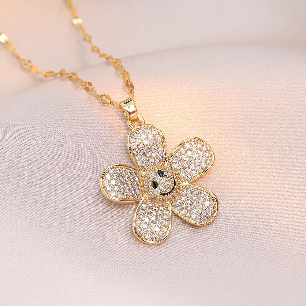 Luxury Female Crystal White Zircon Stone Flower Pendant Necklace Vintage Gold Color Wedding For Women