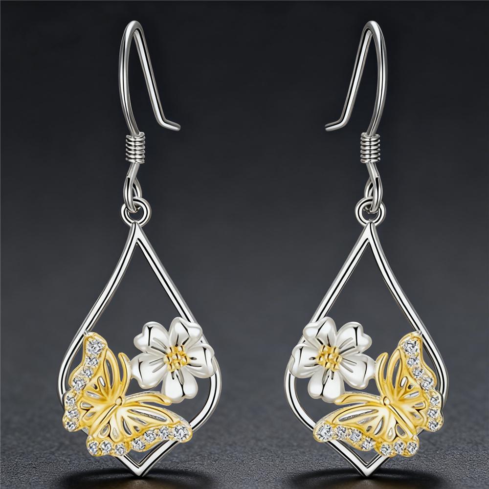 Charm Female Butterfly Animal Flower Drop Earrings Cute Trendy Bridal Silver Color Dangle Wedding For Women