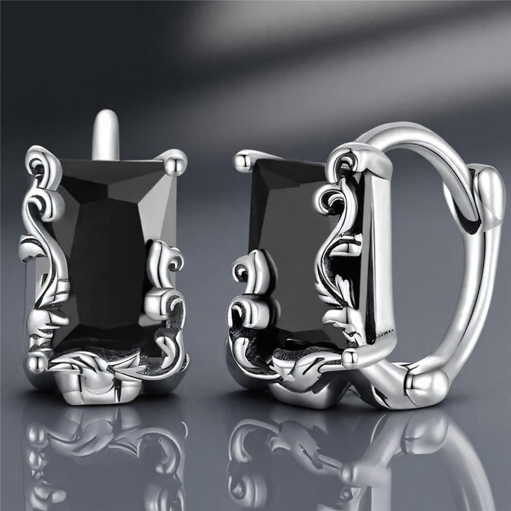 Cute Female Small Black Zircon Stone Hoop Earrings Vintage Fashion Silver Color Wedding For Women