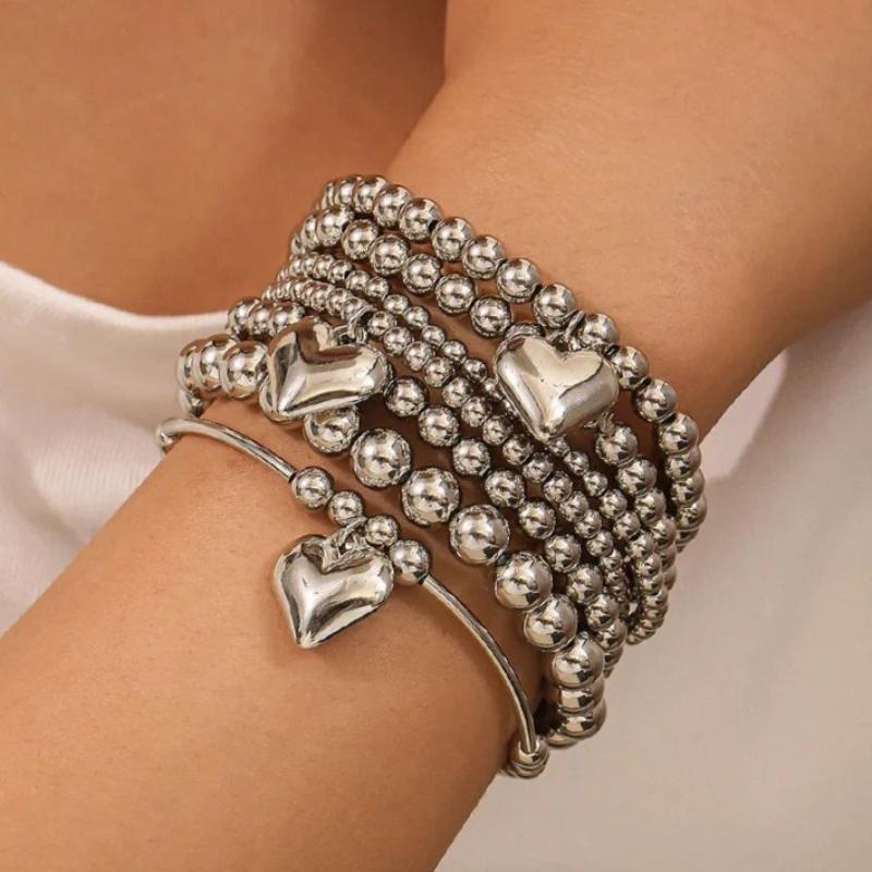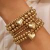 6Pcs/Set Stackable Gold Color Luxury Beads Wristband Accessories Beaded Bracelets Set Pentacle Star Love Heart Charm Hand Chains
