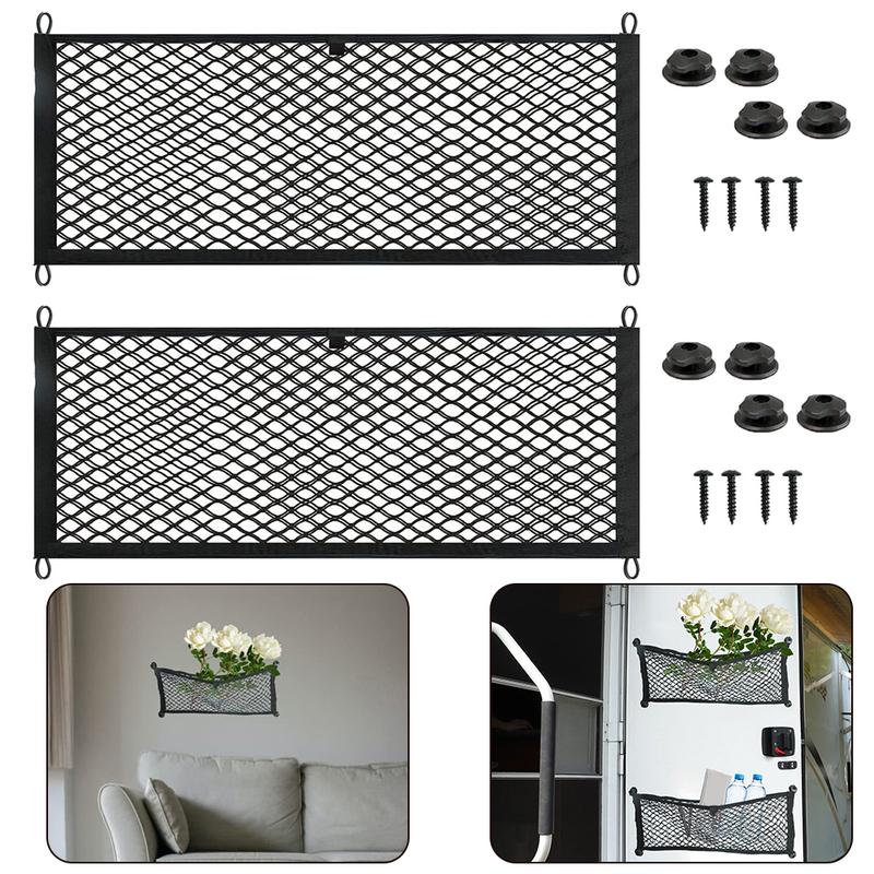 Pocket Storage Net Replacement 2pcs Accessories Black Boat Car Cargo Net Fittings Organizer With Screws 25*60CM