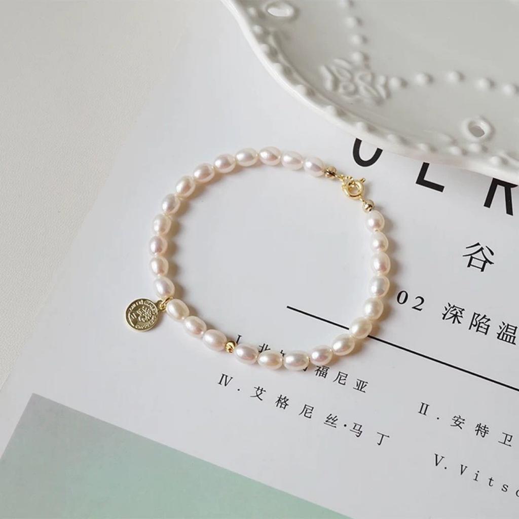 Female Simple Natural Freshwater Small Pearl Bracelet, Strong Light Bracelet, Retro Temperament Ins Niche Design Gift Rice Grains