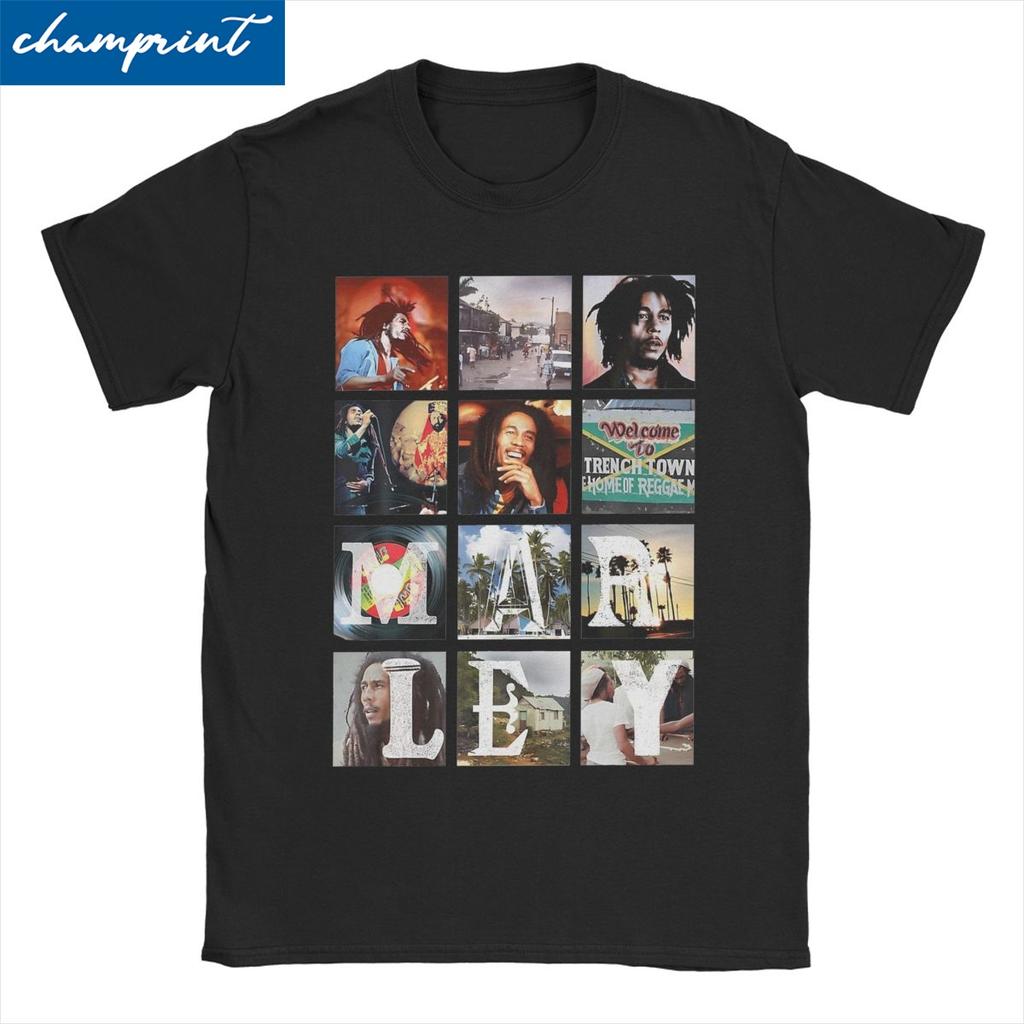 Bob-Marley Collage Reggae T-Shirt for Men Women Jamaican Music Vintage Pure Cotton Tees Short Sleeve T Shirts 6XL Clothing