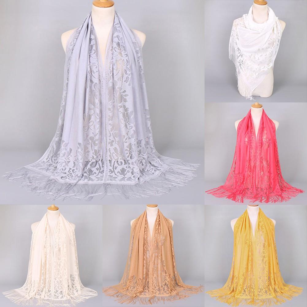 All Match Floral Tassel Scarf Hollow Solid Breathable And Comfortable
