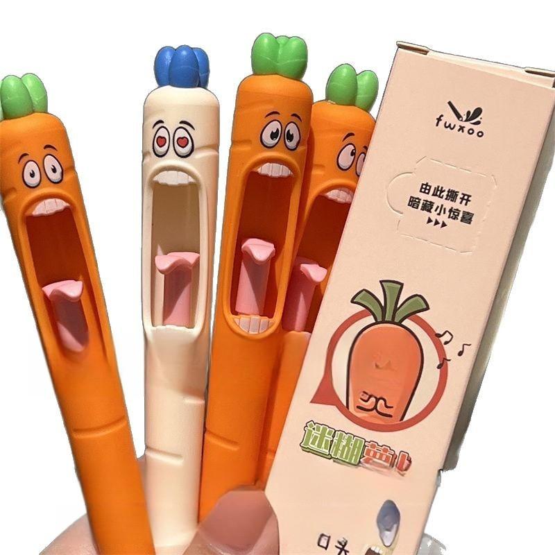 4pcs Funny Carrot Press Type Black Quick Dry Gel Pen High Value Creative Stress Relief Writing Tool for Study Office School
