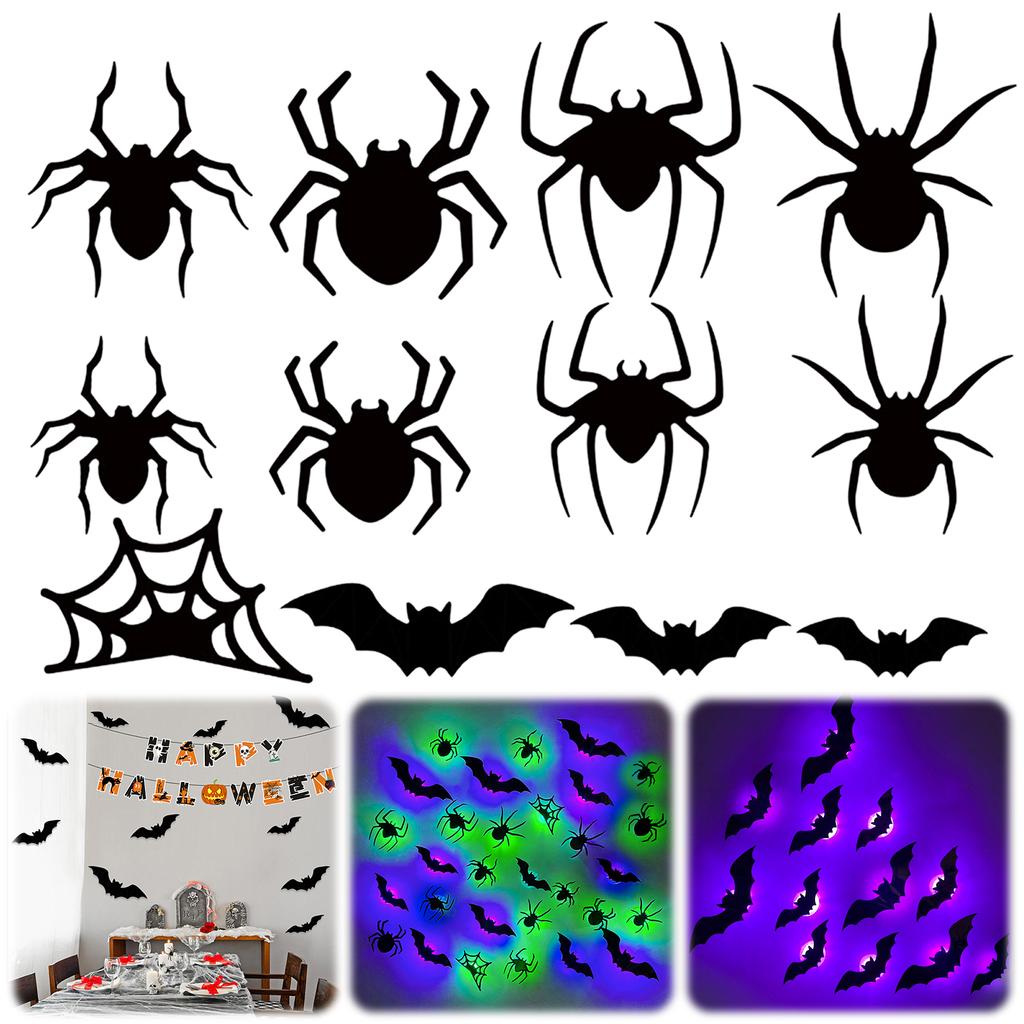 LED Glow Wall Stickers Lighted Wall Stickers Halloween 3D Bat Wall Stickers for Wall Window Indoor and Outdoor Decor