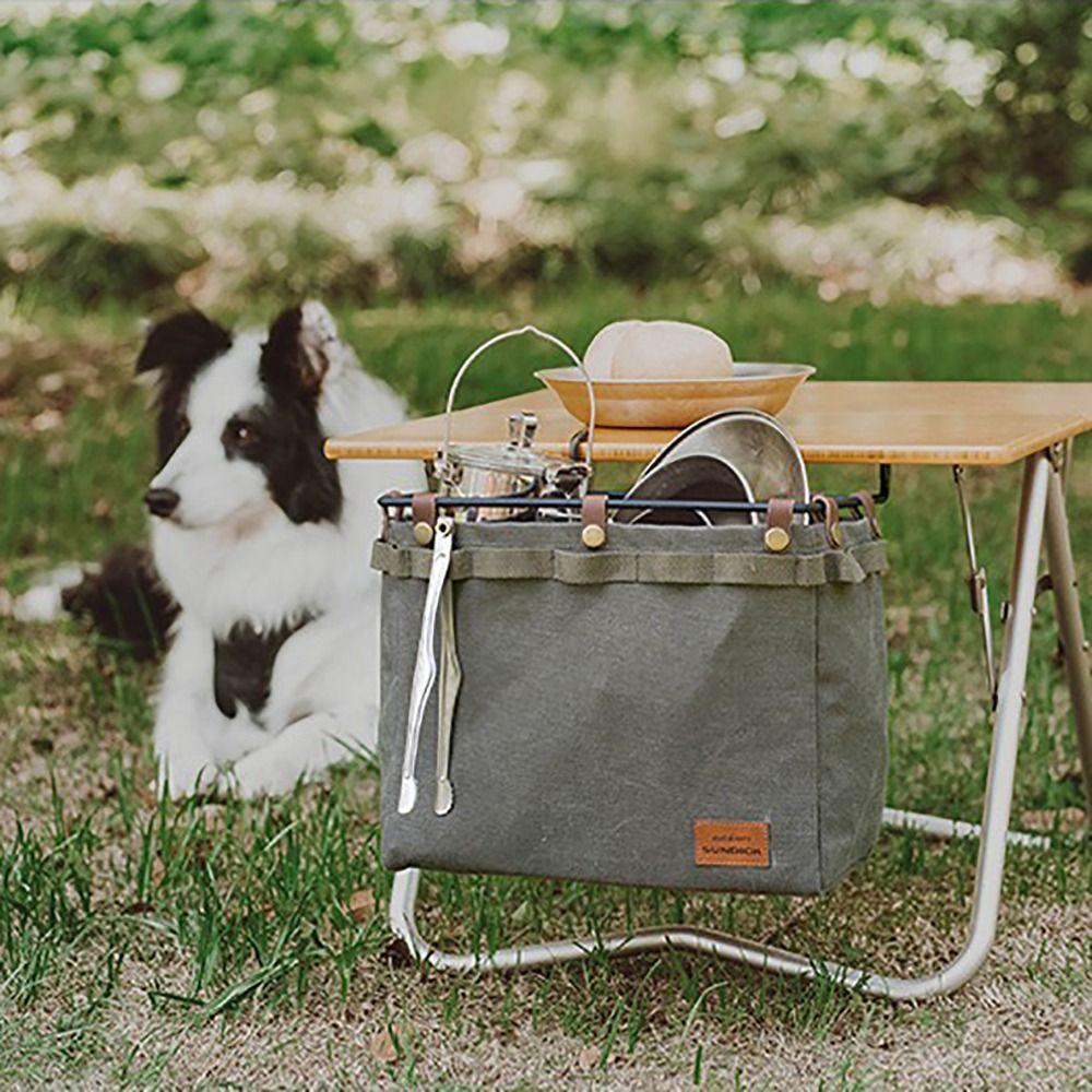 Canvas Table Side Storage Bag Foldable Portable Camping Canvas Bags Large Capacity Picnic Tableware Organizer Bag Picnic