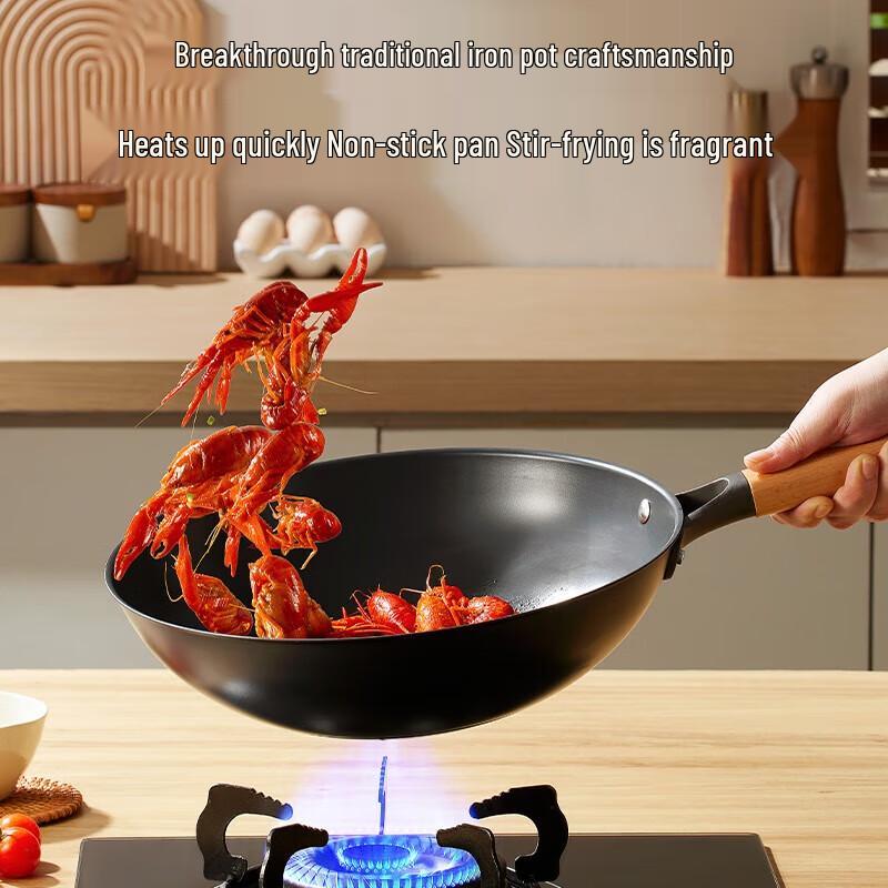 Chui Da Huang 32cm Pre-seasoned Wrought Iron Non-stick Wok