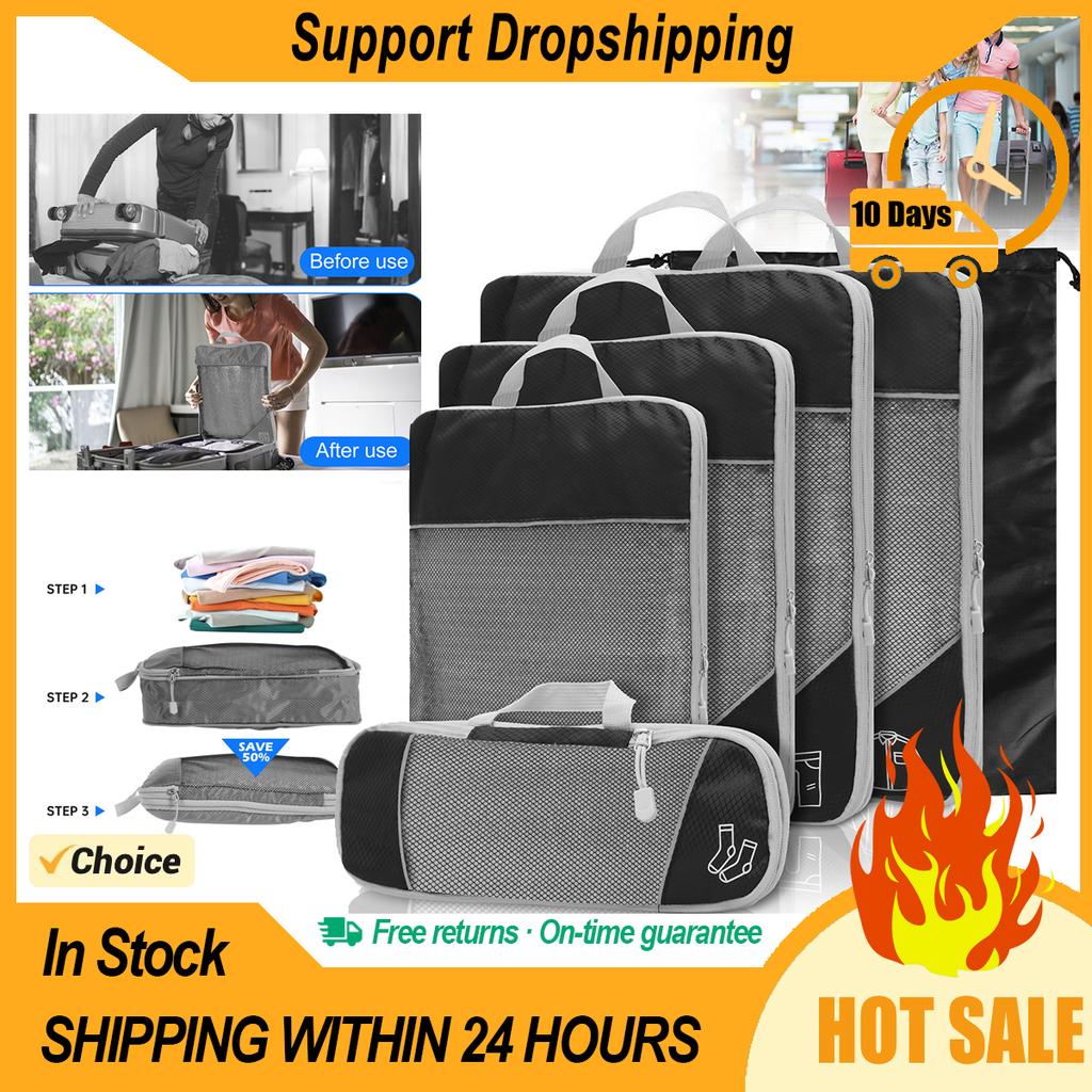 6PCS/Set Compressed Packing Cubes Travel Storage Organizer Set Nylon Luggage Suitcase Organizer Bags Space Saving Packing Cubes