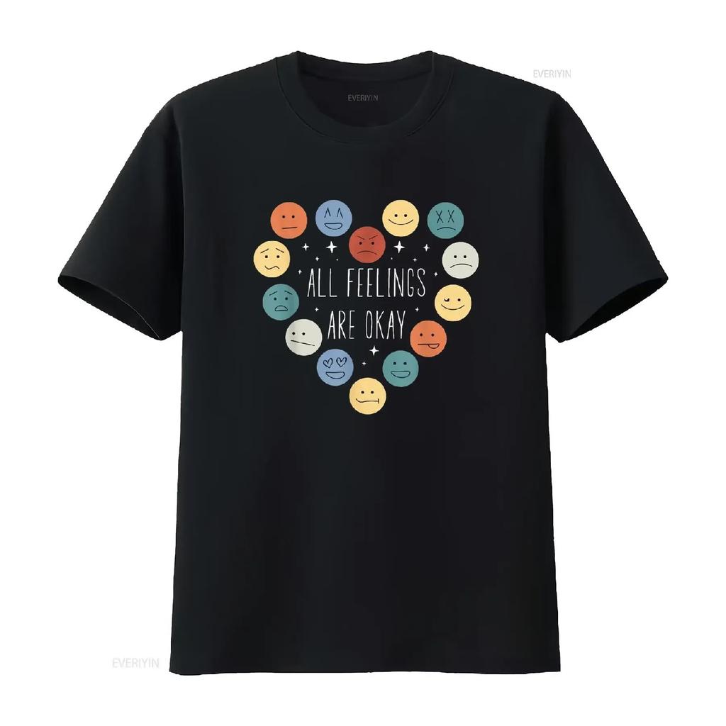 All Feelings Are Okay Mental Health Awareness Month Plus Size Vent Emotion T Shirt Vintage Washed Unisex Casual Slightly