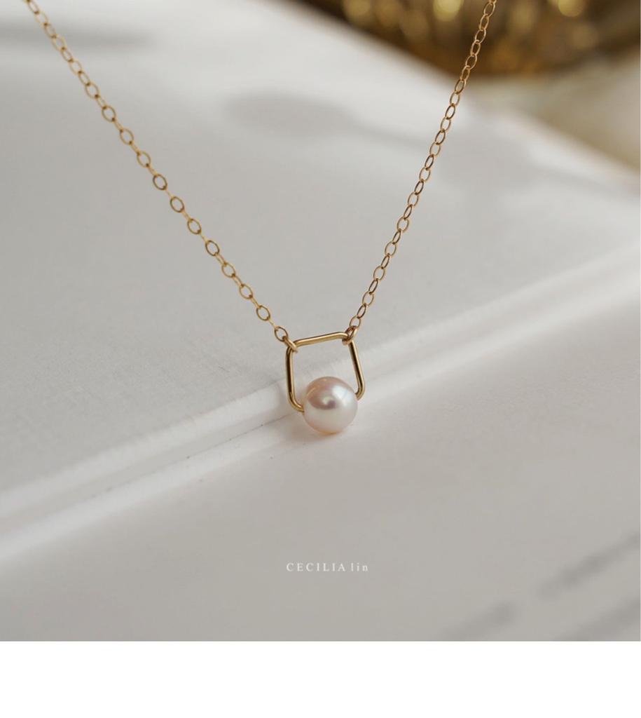 Square and Round Simple Women's Neck Chain Temperament 14K Gold-wrapped Natural Round Bead Pearl Necklace Collarbone Chain Trend
