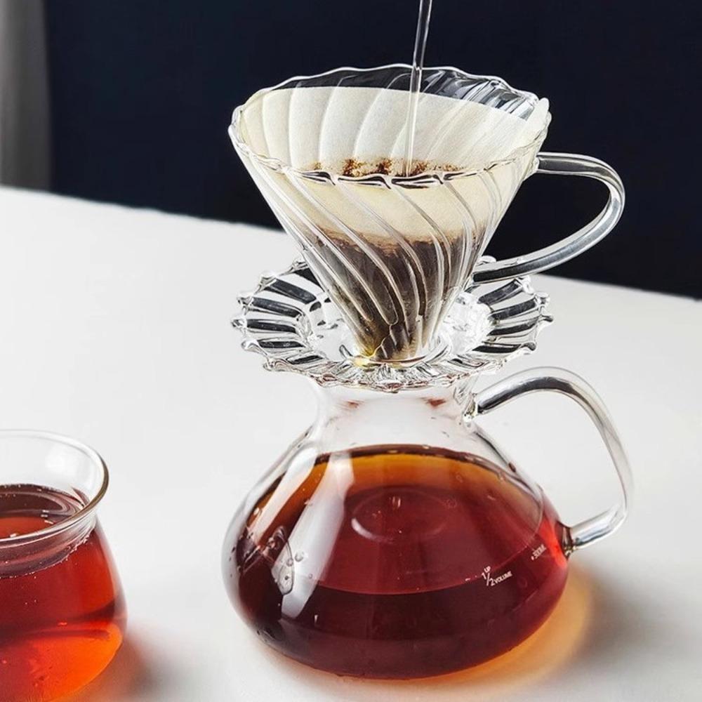 Hand Brewing Coffee Pot Set, Big Belly Coffee Sharing Pot, Heat-resistant Glass V60 Filter Cup Hanging Ear Cup Utensil Brewing