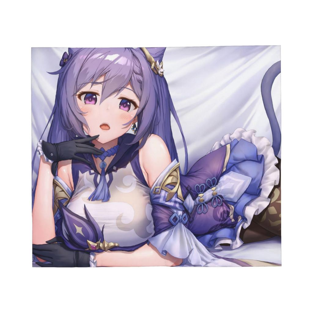 Genshin Impact Anime Keqing Blanket Velvet Decoration Anime Girl Super Warm Throw Blanket for Sofa Outdoor Bedspread