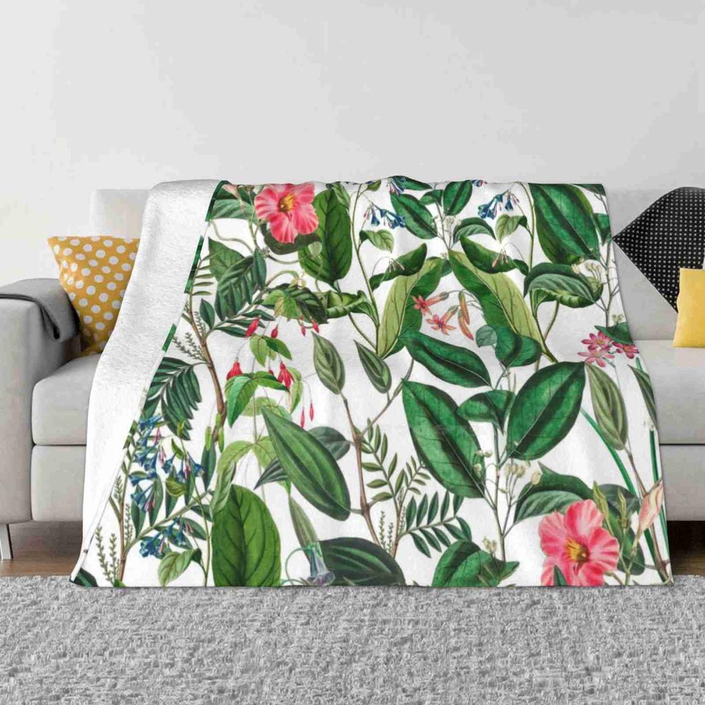 Vintage Hibiscus Fashion Soft Warm Flannel Blanket Vintage Flowers Plants Leaf Nature Scientist Botanist Decorate Classic