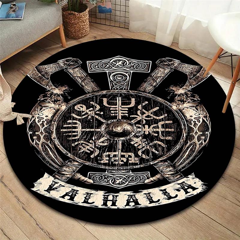 Viking Raven Round Area Rug,Carpet Rug for Living Room Bedroom Sofa Playroom Decor,Non-slip Floor Mat