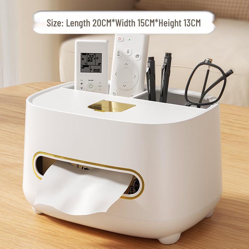 Luxury Multifunctional Desktop Tissue Box with Remote Control Storage