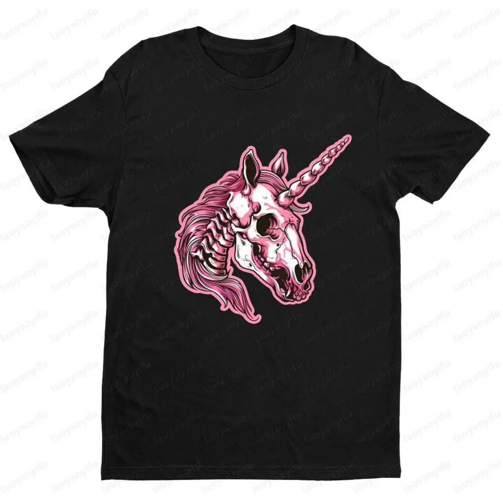 Ancient Skull Unicorn Creative Design T-shirt Gothic Style Daily Life Women Men Unisex Round Neck Short Sleeve Cotton Tee Tops