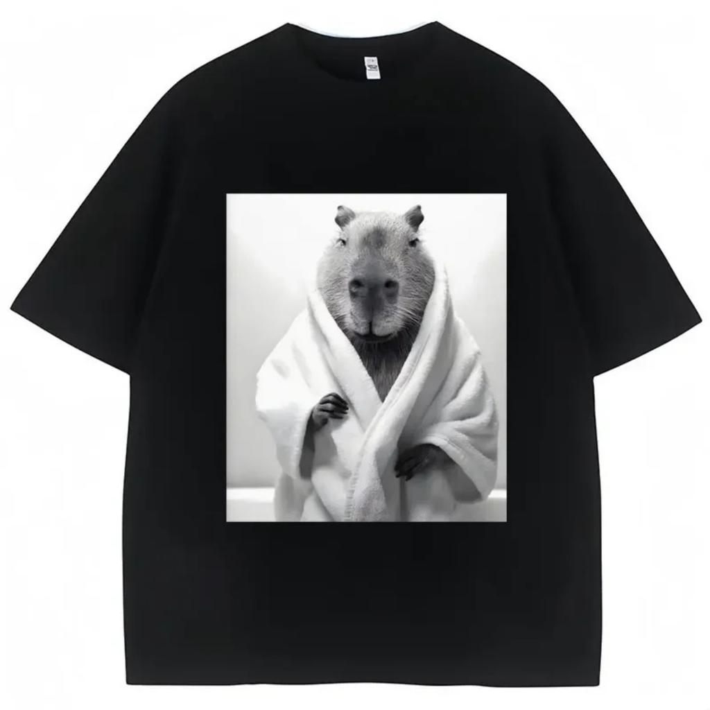 Funny Capybara In Bathrobe Print T Shirts Creativity Popular Summer Short Sleeve Cotton Oversized Casual Tees Unisex Streetwear