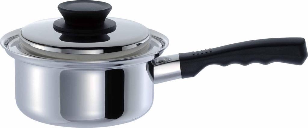 Materials: Body: 3-layer clad material (Inner: Stainless steel, Center: Aluminum alloy, Outer: Stainless steel, 2.2 mm thick), Body Inner: Spiral Polished Finish, Body Outer: Mirror Polished Finish, Lid: Stainless steel, Handle: Phenolic resin, Lid Knob: Phenolic resin