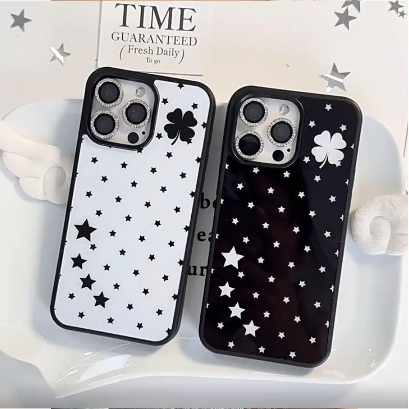 INS Fashion Black White Simple Star Luckily Grass Phone Case for iPhone 16 15 14 13 12 11 ProMax Phone Advenced MINI Cover Capa