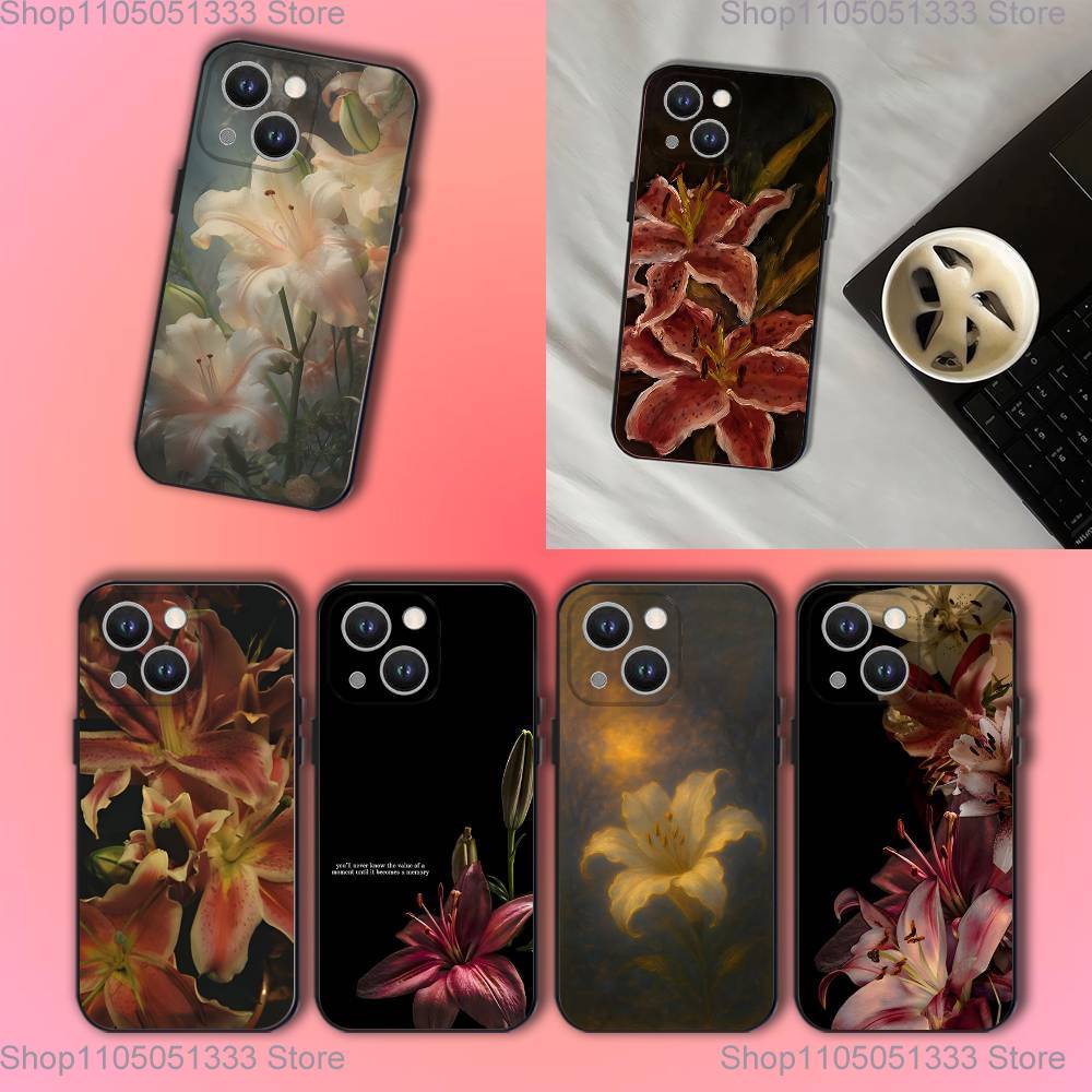 Oil Painting Lily Flower Retro Pattern Phone Case For iPhone 17,16,15,14,13,12,11,Pro,XS,Max,XR,Plus,E,SE4,Mini Black Soft Cover