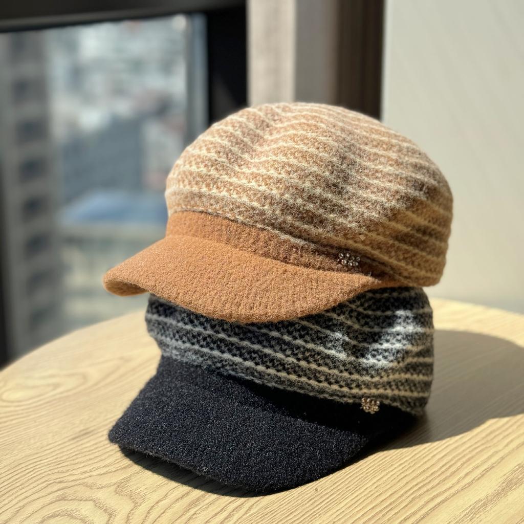 Autumn and Winter Tweed Octagonal Hat Korean Style Three Dimensional Newsboy Hat Elegant Peaked Hat Beret Trend