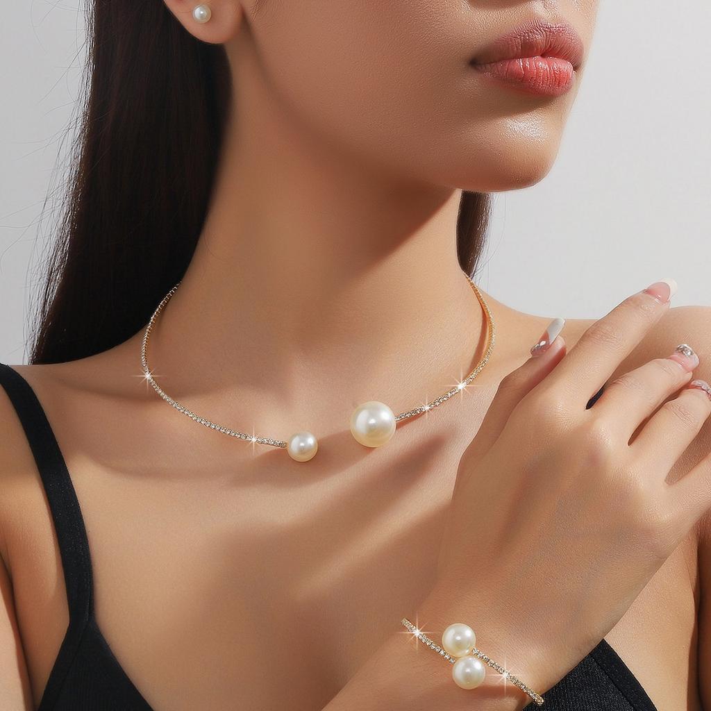 2025 New Design Rhinestone Pearl Set Necklace Bracelet Earring Set Suitable For Bridal Wedding Banquet Anniversary