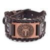 HNSP Wolf Rune Wrap Viking Leather Bracelet For Men Vintage Wide Bracelet Male Accessory
