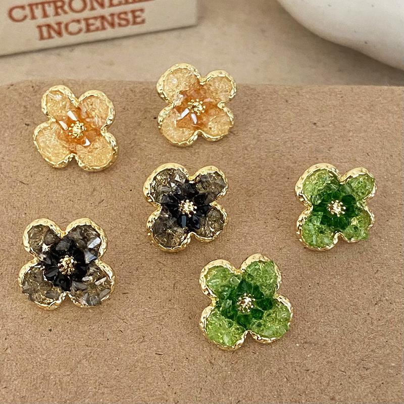 PONYKISS Sterling Silver 14K Gold Colorful Crystal Flower Stud Earrings for Women Fine Cute Plant Accessories