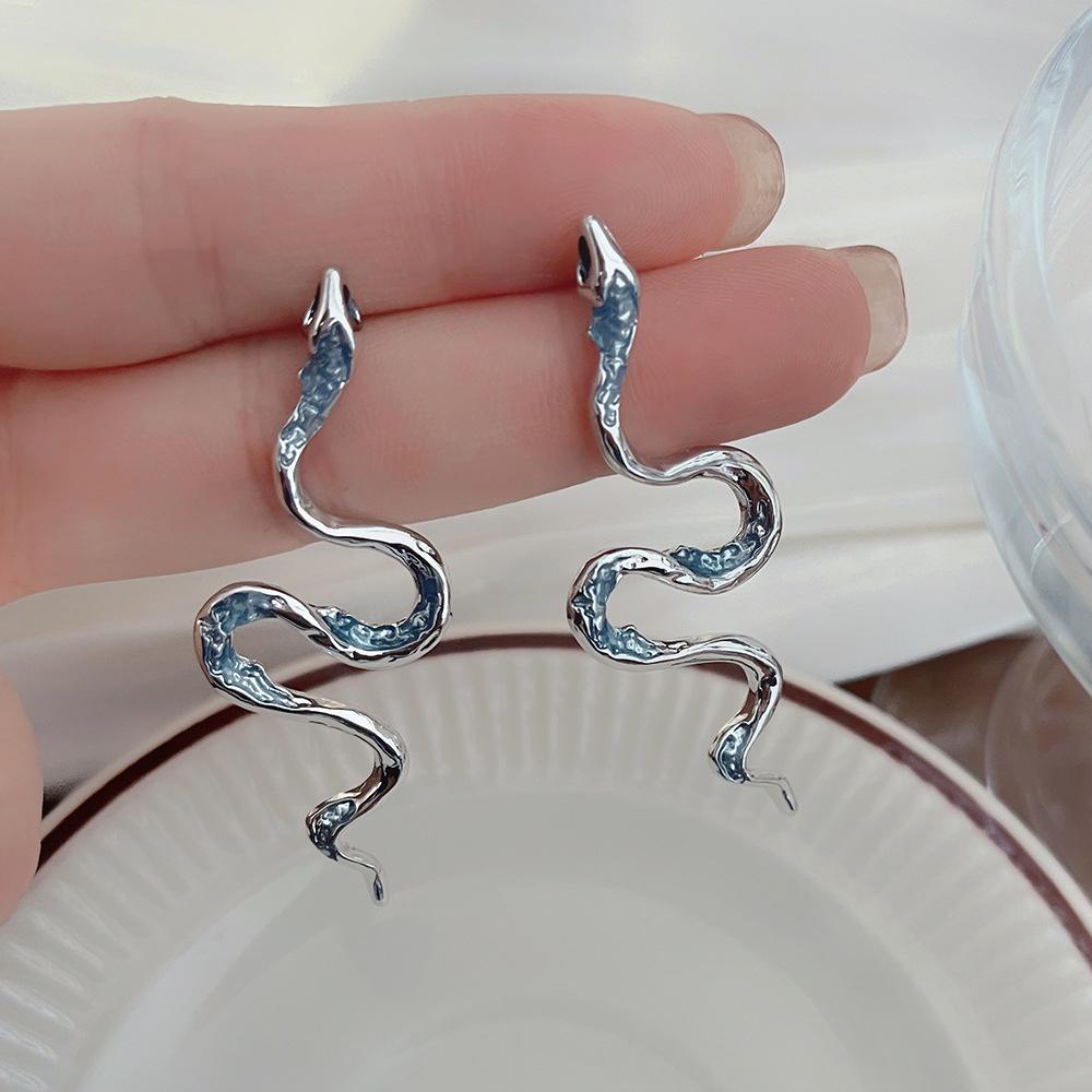 Charm Female Small Snake Animal Stud Earrings Vintage Silver Color Wedding Party Gift For Women