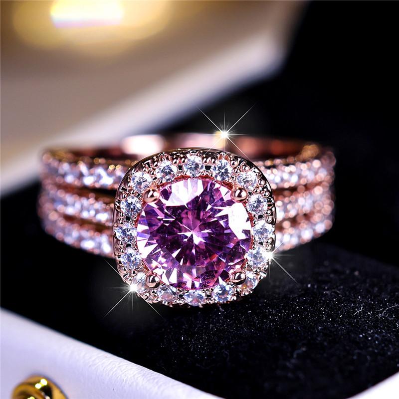 Luxury Female Small Pink Round Zircon Stone Engagement Ring Trendy Rose Gold Color Bride Wedding Gift For Women