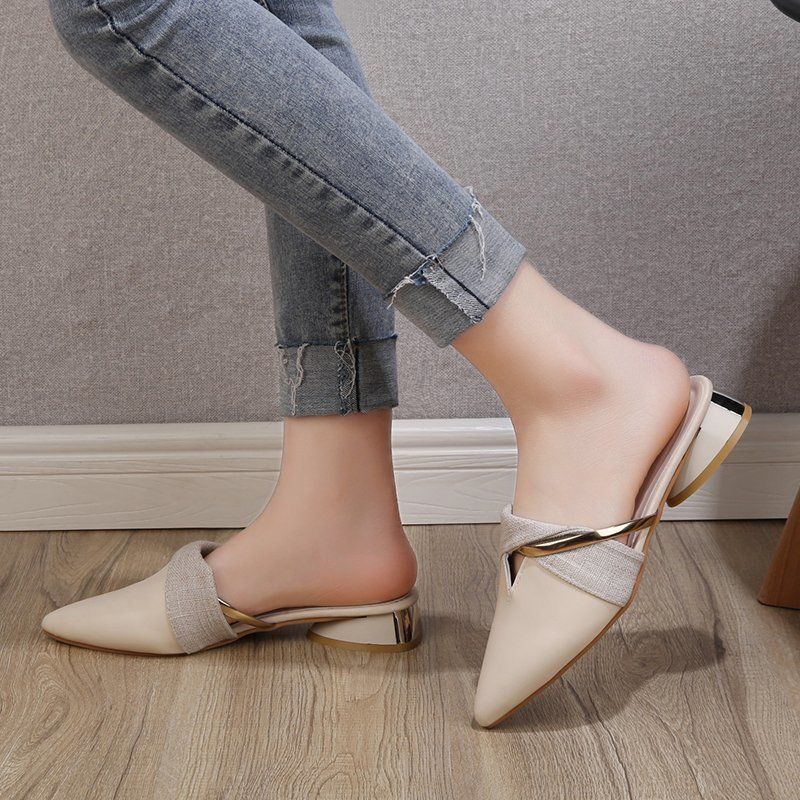 Korean Version Thick Heel Versatile Bag Head Half Tow Pointed Head Fashion Summer Slippers Women Wear Muller Shoes Lazy Tow