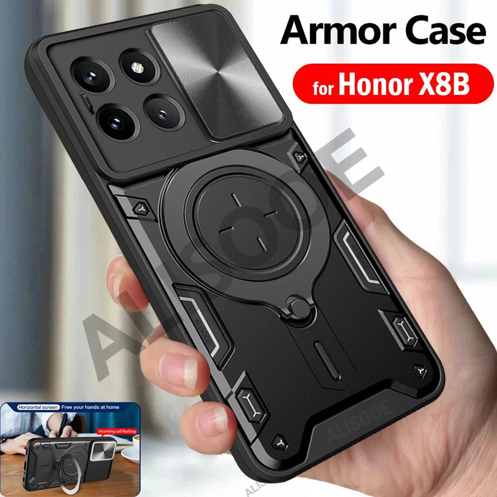 Armor Funda for Honor X8B Case Slide Camera Lens Magnetic Ring Stand Cover for Honor X8B LLY-LX1, LLY-LX2, LLY-LX3 Capa