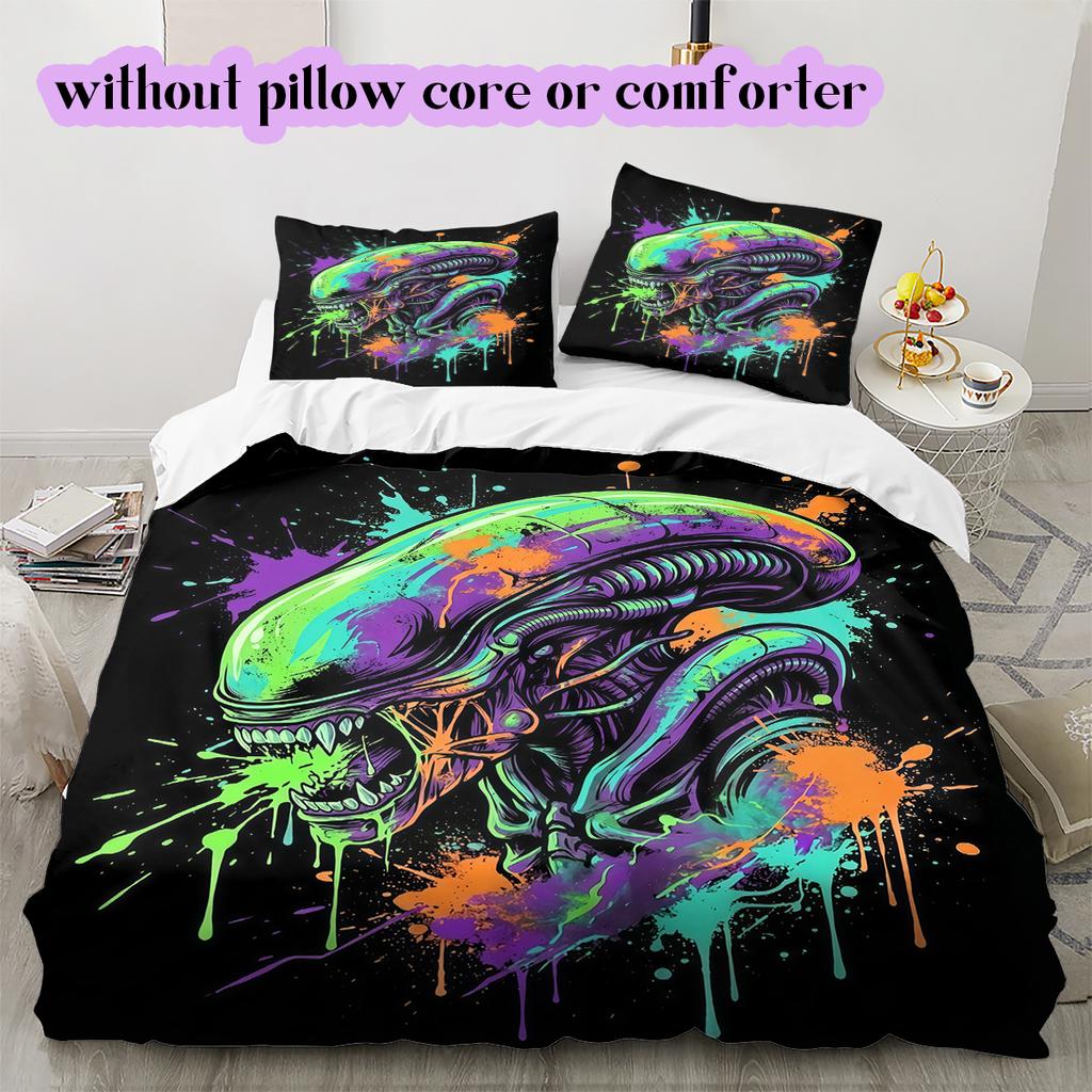 Splashing Ink Death Pattern Bedding Quilt Set Quilt Cover Pillowcase Home Decoration Birthday Gift (1 * Duvet Cover + 2 * Pillowcase, Without Core)