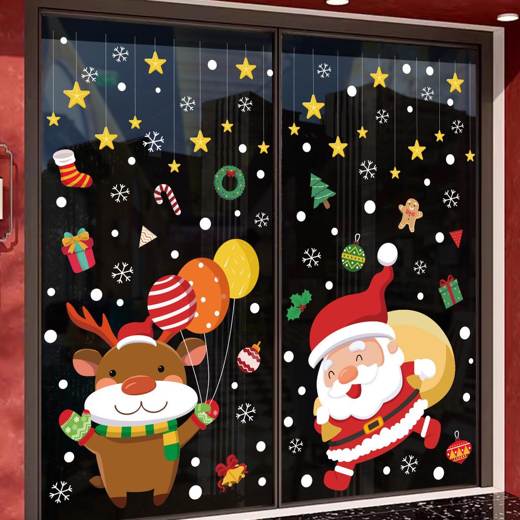 Christmas Decoration Static Stickers for Santa Claus Balloons for Shopping Malls and Stores' Windows, Glass Door Stickers