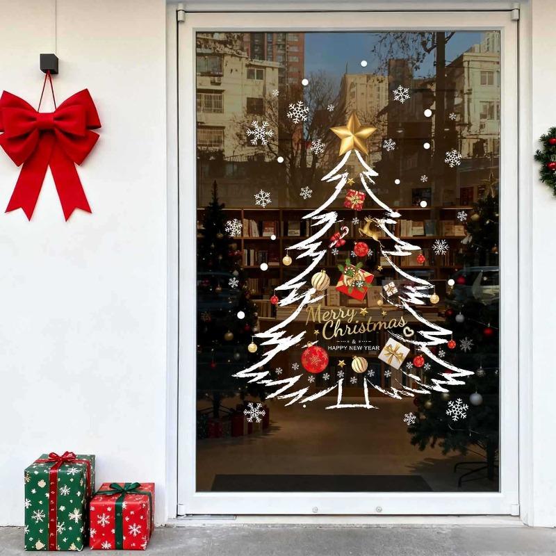 Christmas Decoration Christmas Tree Static Cling Stickers for Store Window Glass Doors