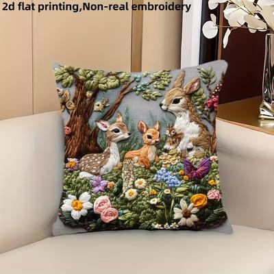Cute Animal Print Pillowcase: 2D Flat Printing, Non-real Embroidery, Night Sofa Night Sofa Cushion