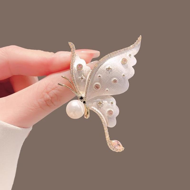 Fashionable Butterfly Pearl Brooch, Anti-exposure Pin for Women, Metal Button To Fix Clothes, Wedding Party Gift