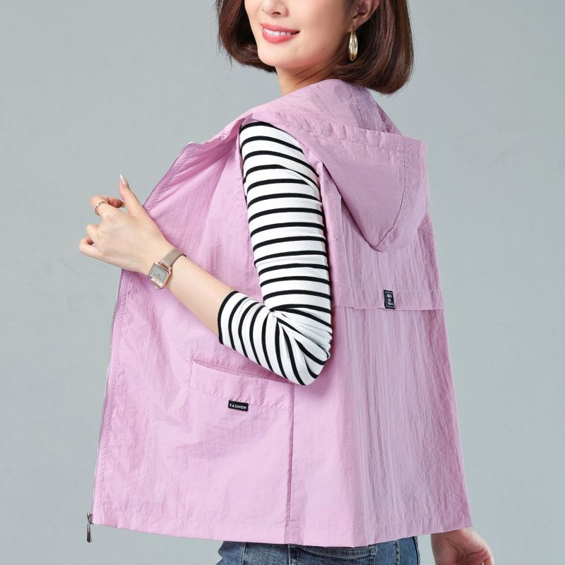 Women's Thin Jacket Sunscreen Hooded Vest Office Casual Vest