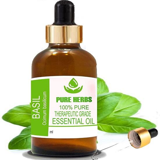 Pure Herbs Basil (Ocimum Basilicum) Pure & Natural Therapeutic Grade Essential Oil Glass