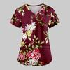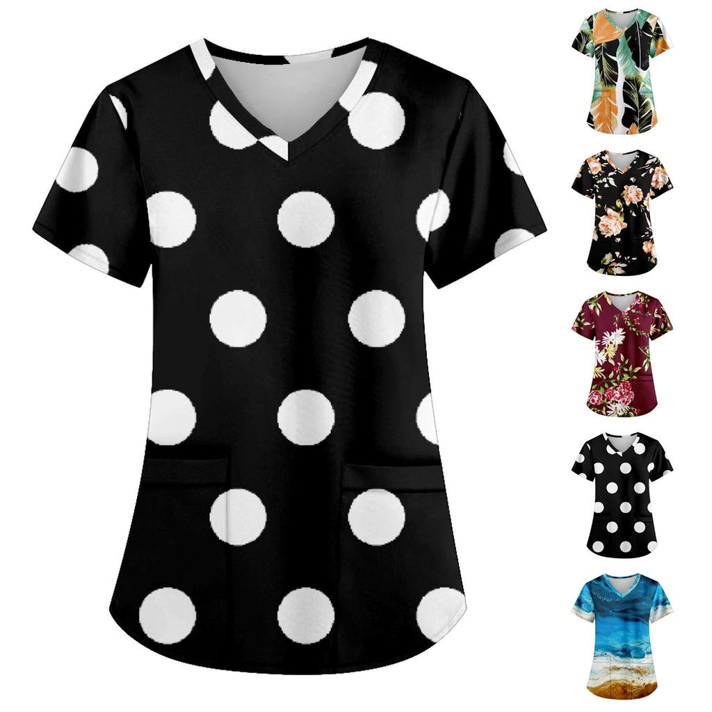 Women's Fashion Printed Work Uniform With Pocket T-Shirt Short Sleeve Top
