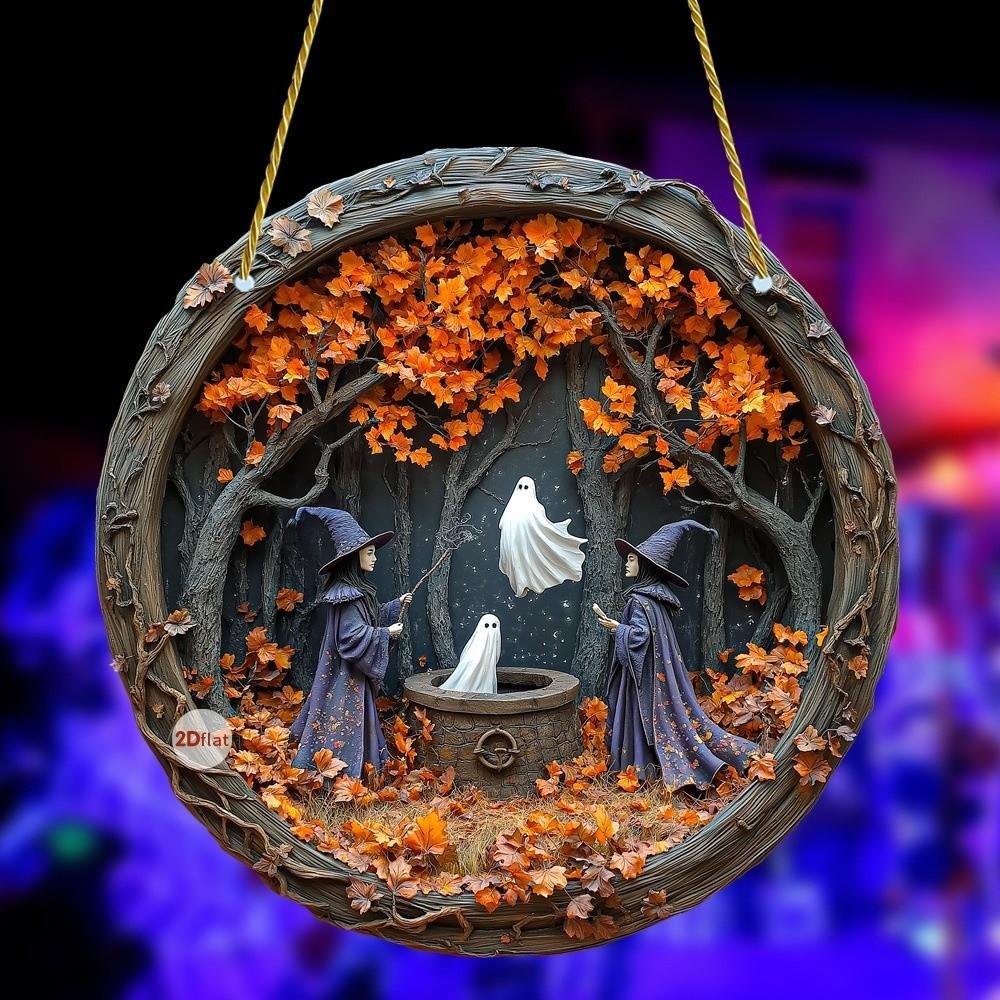 Gothic Witch Door Window Hanging Pendant 2D Flat Magical Home Door Decoration Acrylic Medal Halloween Decoration Holiday Gift