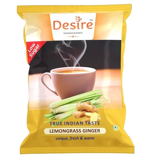 Desire Instant Premix Lemongrass Ginger Tea Powder Low Sugar (Diet) - Infused with Natural Lemongrass Plant and Ginger Extract - 500g
