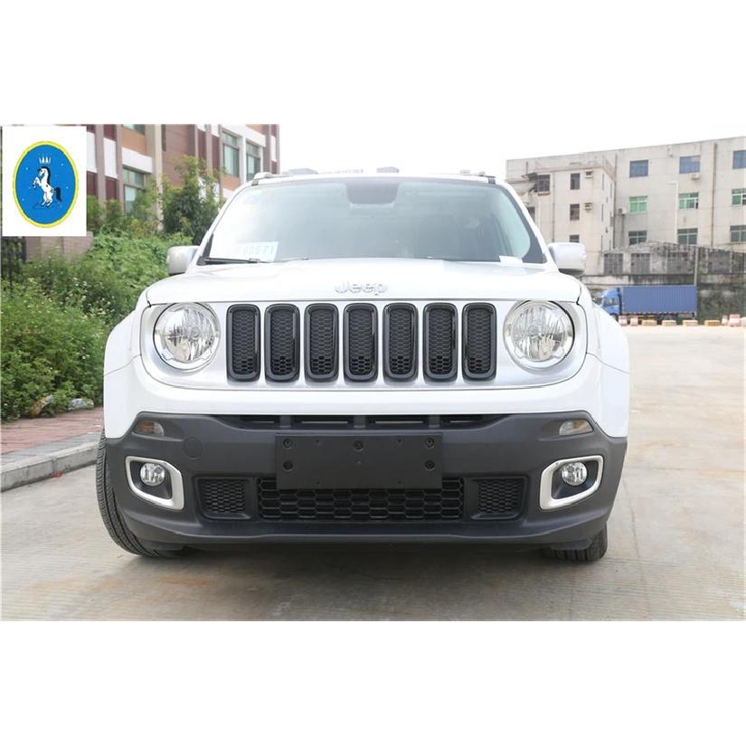 Yimaautotrims Auto Accessory Front Face Mesh Grille Cover Front Grille Ring Trim 7 Pcs ABS Fit For Jeep Renegade 2015 - 2018