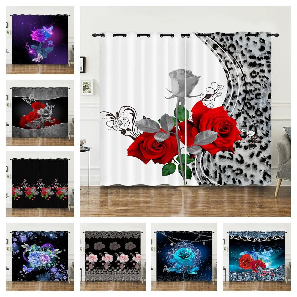 Curtains Love Rose Valentine Hunliji Curtains Bedroom Living Room Blackout Curtain Perforated