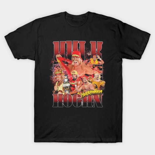 Men Black Print T-shirt Hulk Hogan Hulkamania No-Cut Transfer Paper Print Cotton Tshirt